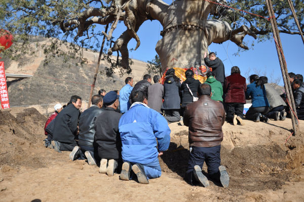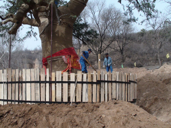 延安市南溝門水利樞紐工程是經國家發改委批準立項建設的中型水利樞紐工程。該水利工程淹沒區范圍內史家河村生長著一株樹齡兩千年以上的側柏,地徑3.05米,高度18.5米,屬我國僅存不多的特大古柏樹,當地稱其為“武帝柏”,又名“老君柏”。按古樹名木保護相關規定,經林業專家研究、論證,報請省政府批準,對“武帝柏”進行保護性移植。