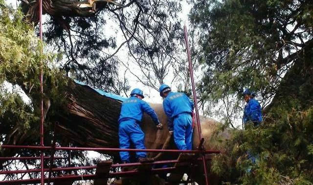 “武帝柏”移植工作于2009年11月啟動,工程分三個階段進行,第一階段是移栽前養護;第二階段是移栽;第三階段是移栽后管護復壯。2011年3月26日,第一、二階段工作完成(歷時482天),“武帝柏”移栽成功,進入第三階段5年管護期。在第二階段古樹吊裝和運輸過程中,租用國內先進的650噸履帶吊車和十軸液壓板車,樹根土球直徑達9米,實際起吊重量達450噸。此次移植的“武帝柏”,樹齡、總重量及移植技術難度均堪稱世界之最。目前,移植后的“武帝柏”生長旺盛,正在做申報吉尼斯世界紀錄各項準備工作,待2016年3月5年養護期滿后,將正式申報吉尼斯世界紀錄。